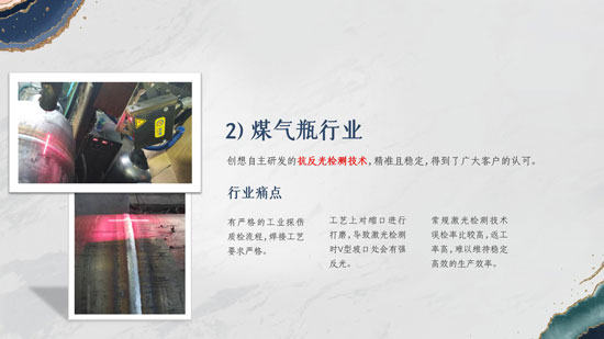 針對環(huán)縫焊接行業(yè)的各種焊偏問題,我們創(chuàng)想公司推出一款產(chǎn)品叫焊縫跟蹤器,它能實時檢測焊縫位置并且引導(dǎo)焊槍對準(zhǔn)焊縫進(jìn)行焊接,現(xiàn)在已經(jīng)廣泛應(yīng)用于以下這些行業(yè),口碑優(yōu)良。