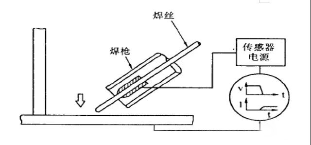 電弧傳感器是一種常見的焊縫跟蹤傳感器。通過電弧相對焊縫的擺動,直接利用焊接電弧參數(shù)的變化計算出焊槍至工件的距離變化量,進而計算出坡口的位置形狀信息。電弧傳感器的優(yōu)點是不需要在焊槍上添加附加設(shè)備,成本低廉,缺點是對焊縫坡口形狀依賴較大,只適應(yīng)一些對稱坡口焊縫。