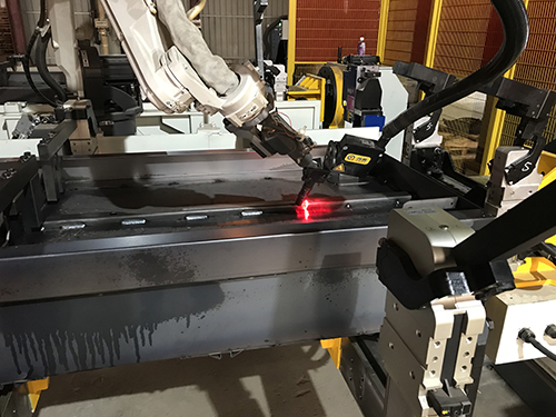 前后板的焊接主要用的是機(jī)器人搭配激光跟蹤系統(tǒng)的尋位功能就可以解決;側(cè)板主要以長(zhǎng)焊縫為主,主要用到的是機(jī)器人搭配焊縫跟蹤系統(tǒng)和外部軸協(xié)同的實(shí)時(shí)跟蹤功能。目前這些解決方案我們創(chuàng)想都是可以實(shí)現(xiàn)的。
